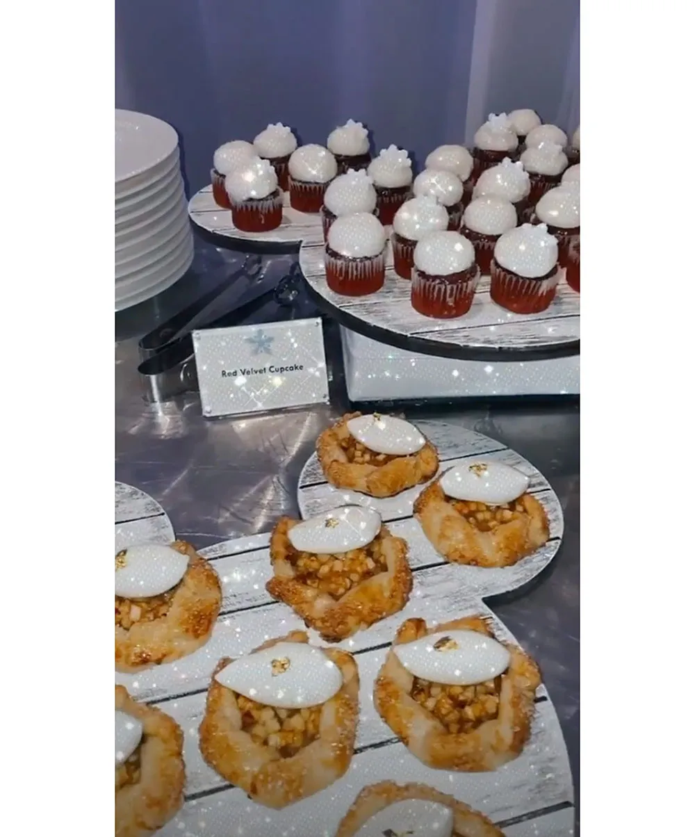 The little one’s carnival-themed birthday bash included a butterfly rainbow forest, a “Baby Shark” performance, a cloud room and a carousel ride. Guests drank from crazy straws spelling Stormi’s name, enjoyed a cake with her face on it and snacked on pretzels dangling from a waiter’s hat, as well as mini personal pizzas.