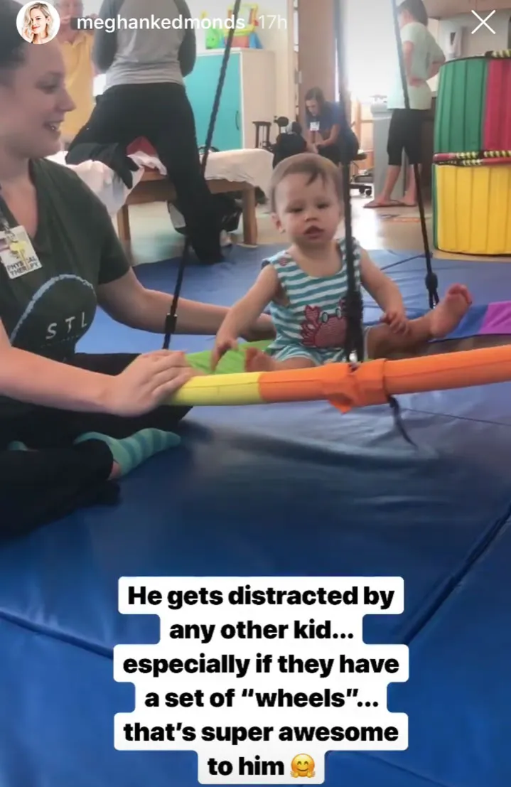 Meghan King Edmonds shared videos of her son Hart doing physical therapy on Friday, July 12, after revealing he’d been diagnosed with irreversible brain damage.