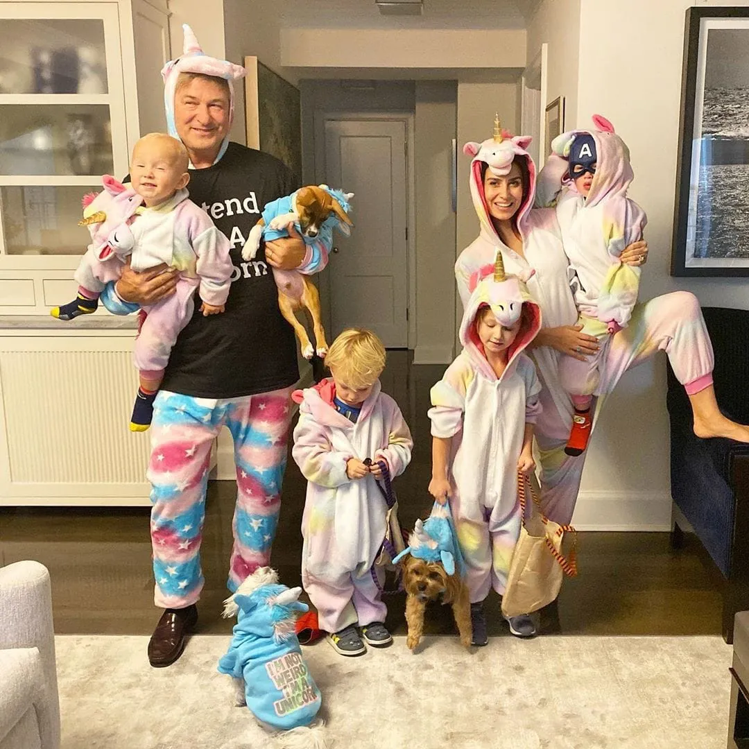 Hilaria Baldwin also revealed her pregnancy news in September. The Living Cleary Method author, 35, and her husband, Alec Baldwin, wore unicorn costumes on Thursday with their four kids — Carmen, 6, Rafael, 4, Leonardo, 3, and Romeo, 17 months.