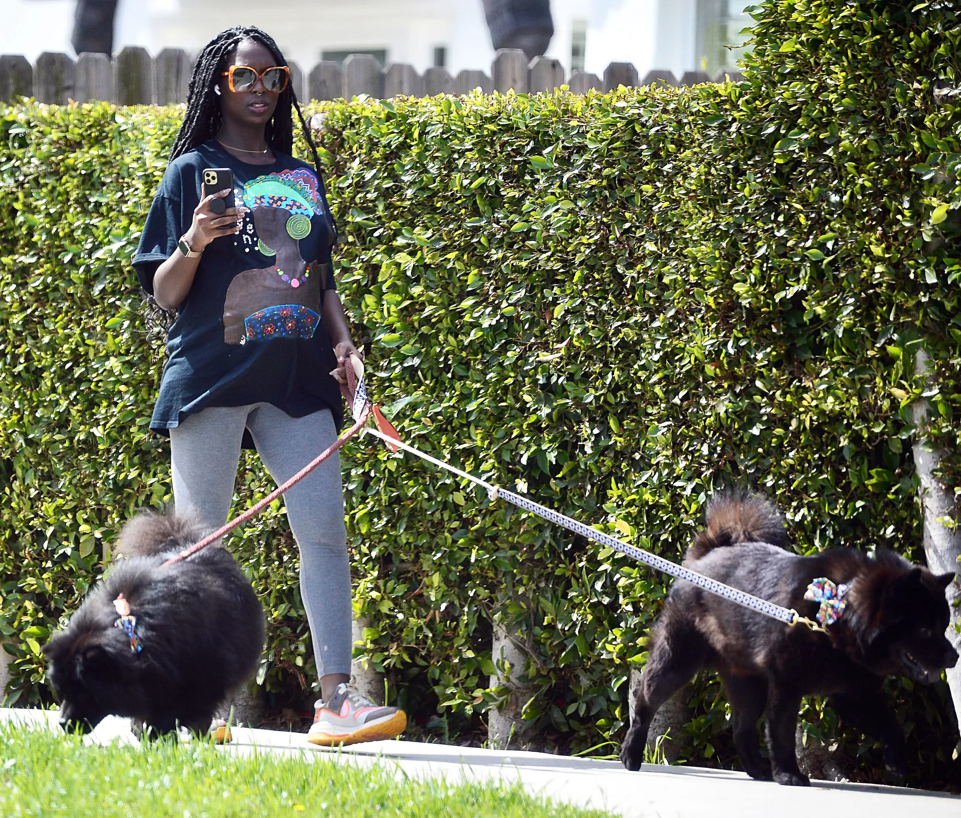 On the move! Jodie Turner-Smith walked her dogs in the final stretch of her pregnancy.