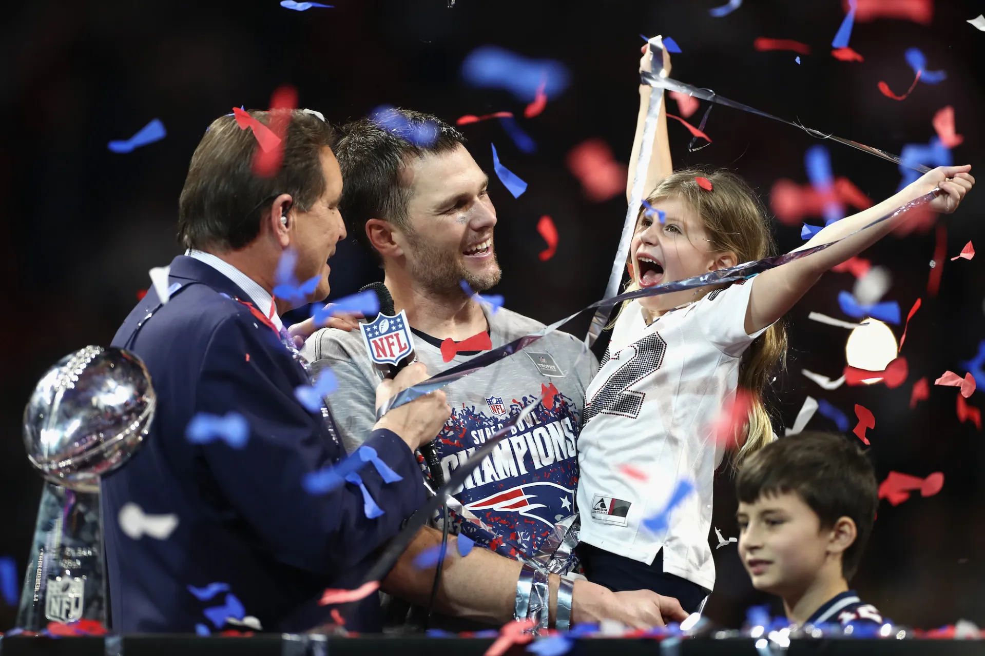 With every win, Brady’s post-game celebrations grew greater and featured more quality time with his three children: Jack, whom he shares with ex Bridget Moynahan, and Benjamin and Vivian, whom he shares with ex-wife Gisele Bündchen.