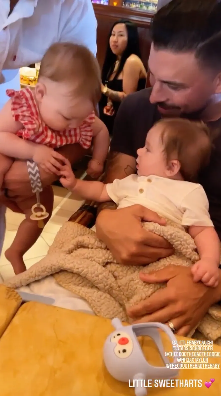 Hartford met Cartwright and Jax Taylor’s son Cruz in April. Scheana Shay, who had yet to give birth at that time, wrote that she wanted to tag along “next time.” She and her partner, Brock Davies, went on to welcome their daughter, Summer Moon Honey, days later.