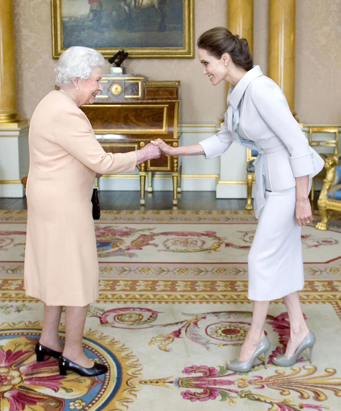 The actress and humanitarian, 39, met with Her Royal Majesty in the Palace’s 1844 Room, where the Queen made her an Honorary Dame Commander. (An honorary dame is the female equivalent of knighthood, the highest honor bestowed upon a citizen of the British Empire.)