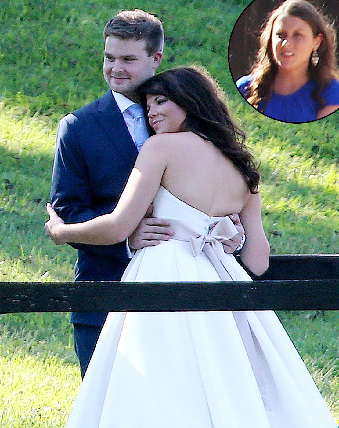 The mother of four, 27, was photographed for the first time since her husband's infidelity confession, wearing a conservative blue T-shirt, khaki pencil skirt, and earrings. During the nuptials, Anna cradled her 2-year-old son Marcus in her arms and stood around her father-in-law, Jim Bob Duggar.