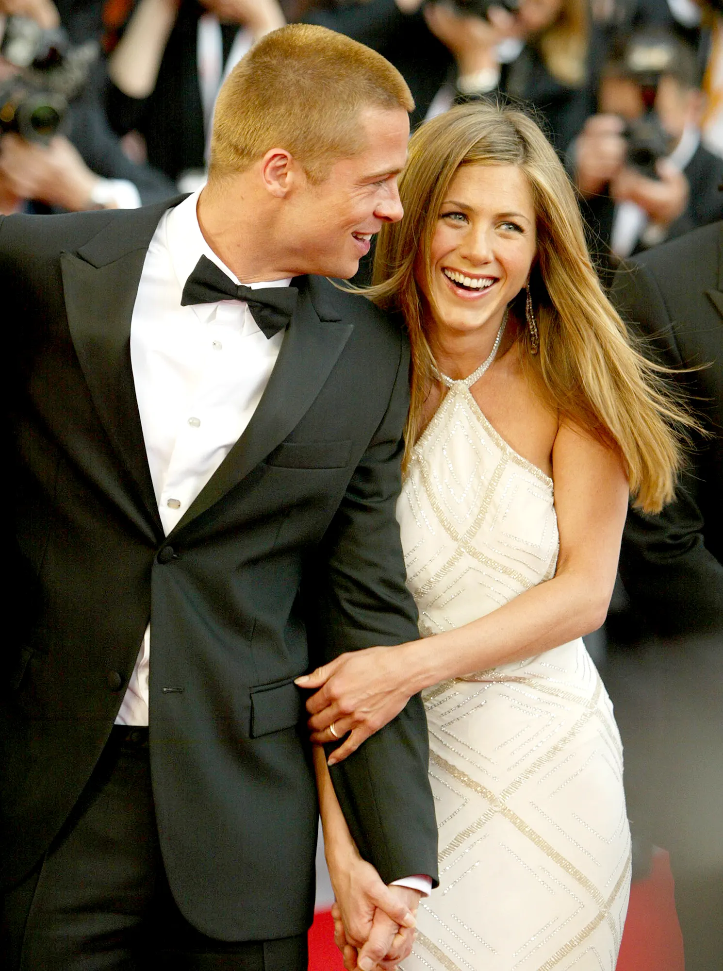While walking to his car in Los Angeles recently, Pitt, 55, was approached by paparazzi who inquired about the potential of him and the Friends alum, 50, heating things up again — and he couldn’t help but chuckle.