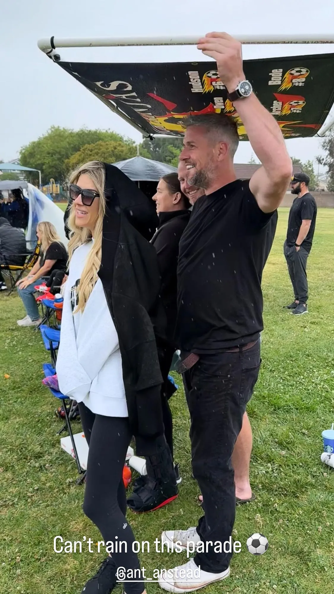 “Can’t rain on this parade ⚽️,” Haack, 41, wrote via her Instagram Stories on Saturday, April 26, tagging Anstead’s account and sharing a photo featuring the pair standing together while watching their 5-year-old son Hudson’s soccer game.