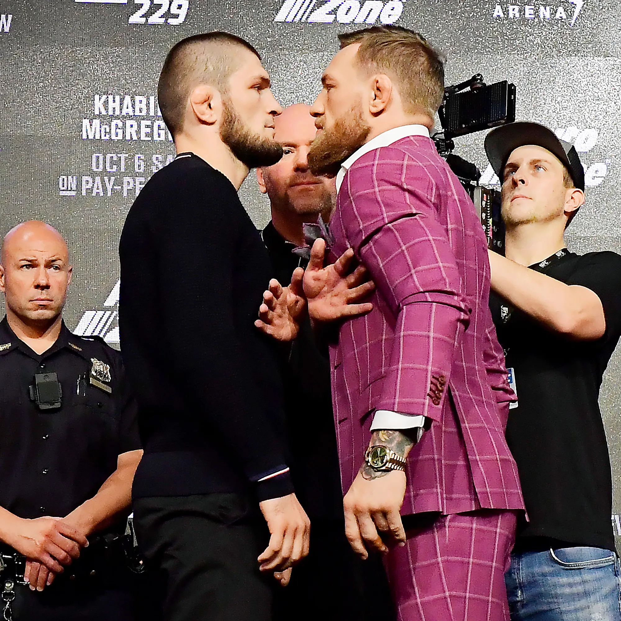 UFC president Dana White spoke out in a press conference following the match and noted that three members of Nurmagomedov’s team were arrested following the incident at Las Vegas’ T-Mobile Arena. White said that McGregor will not press charges, however, Nurmagomedov “could earn a suspension” for the debacle.