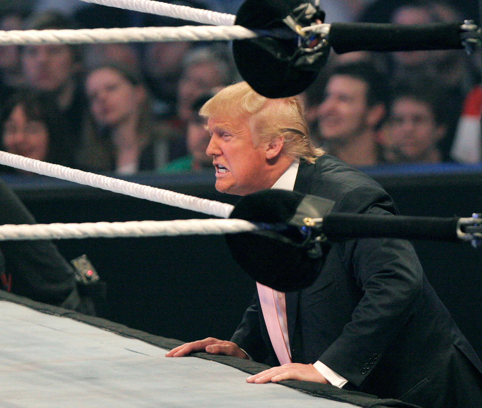 The altered video originated from the real estate mogul’s 2007 appearance on WWE’s WrestleMania 23, where he tackled the company’s founder Vince McMahon.