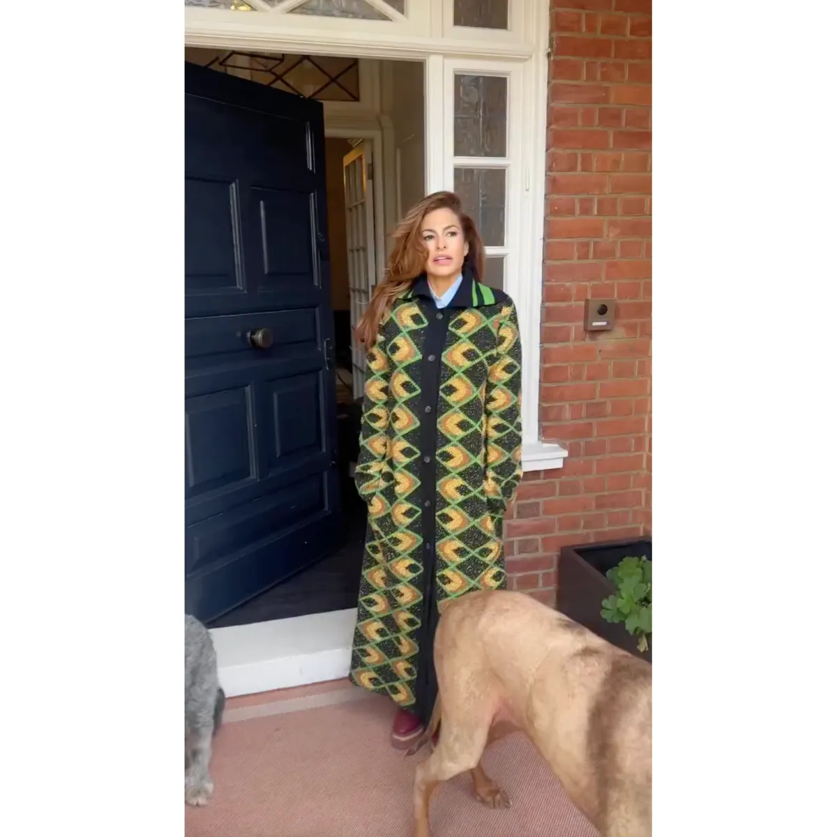 In an additional clip uploaded on Saturday, December 27, Mendes gave a peek at her and Gosling’s cozy home. She can be seen coming out of the front door of the home made out of red bricks. Mendes struggled to decide what jacket to wear outside — a chic colorful coat dress or Gosling’s green jacket.