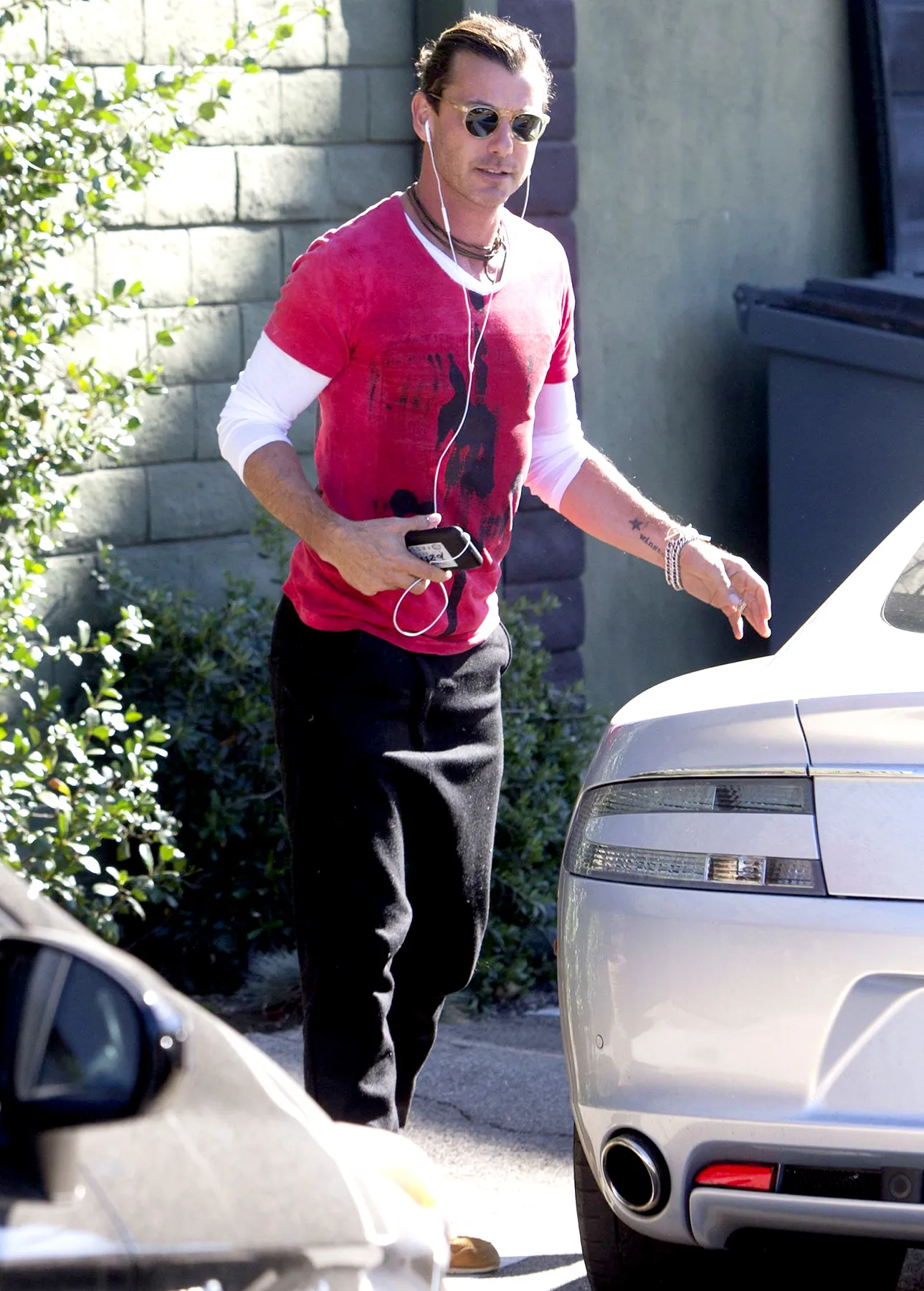 The Bush rocker, 50, looked low-key as he drove to a studio in North Hollywood. For the outing, Rossdale sported black sweatpants, two layered shirts, shades, headphones, and — on his left ring finger — a thick band.