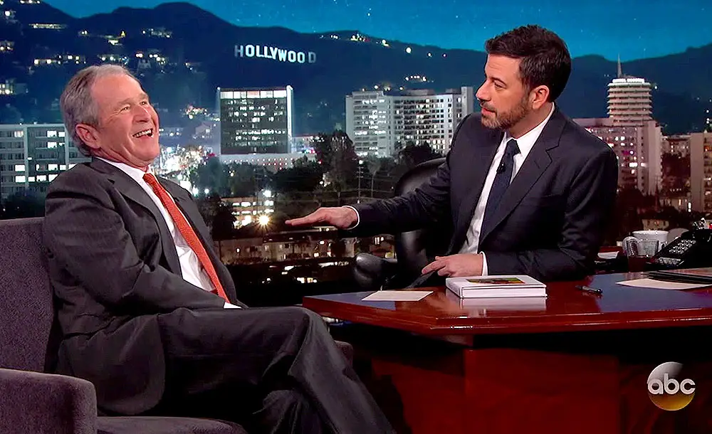 Kimmel then wanted to know if Bush enjoyed the White House Correspondents’ Dinners, which Trump is not attending this year. “Yeah!” he said. “I love humor, and the best humor is when you make fun of yourself.” Kimmel exclaimed, “Well, tell that to the president! He doesn’t think so.” Bush and Kimmel both chuckled at the jab.