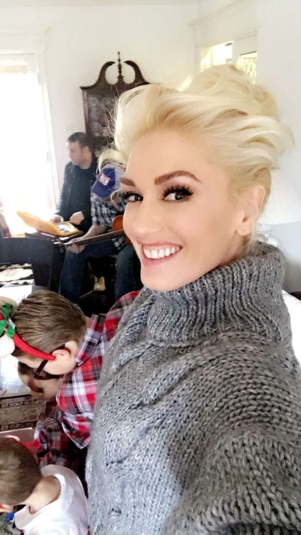Stefani’s three sons with ex-husband Gavin Rossdale appeared to take a style cue from their mom’s main man — Kingston, 10, Zuma, 8, and Apollo, 2, were also dressed in plaid shirts, while the No Doubt singer wore a chunky-knit gray sweater.