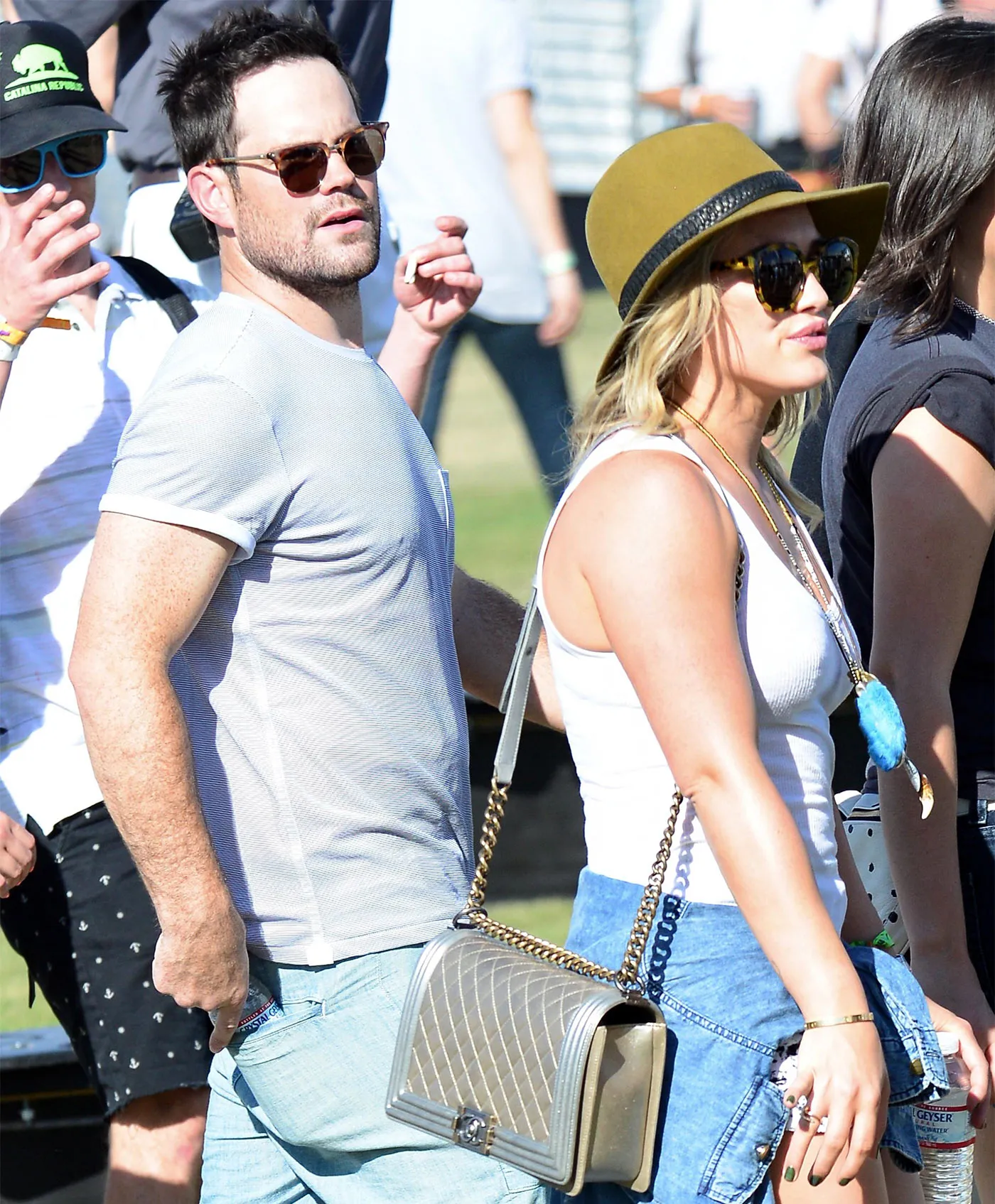 At Coachella, the two were snapped joking together and comfortably soaking in the music scene. Duff looked summery in a white tank, shorts, and fedora, while Comrie was also dressed casually for the festival in shorts, sneakers, and a t-shirt.