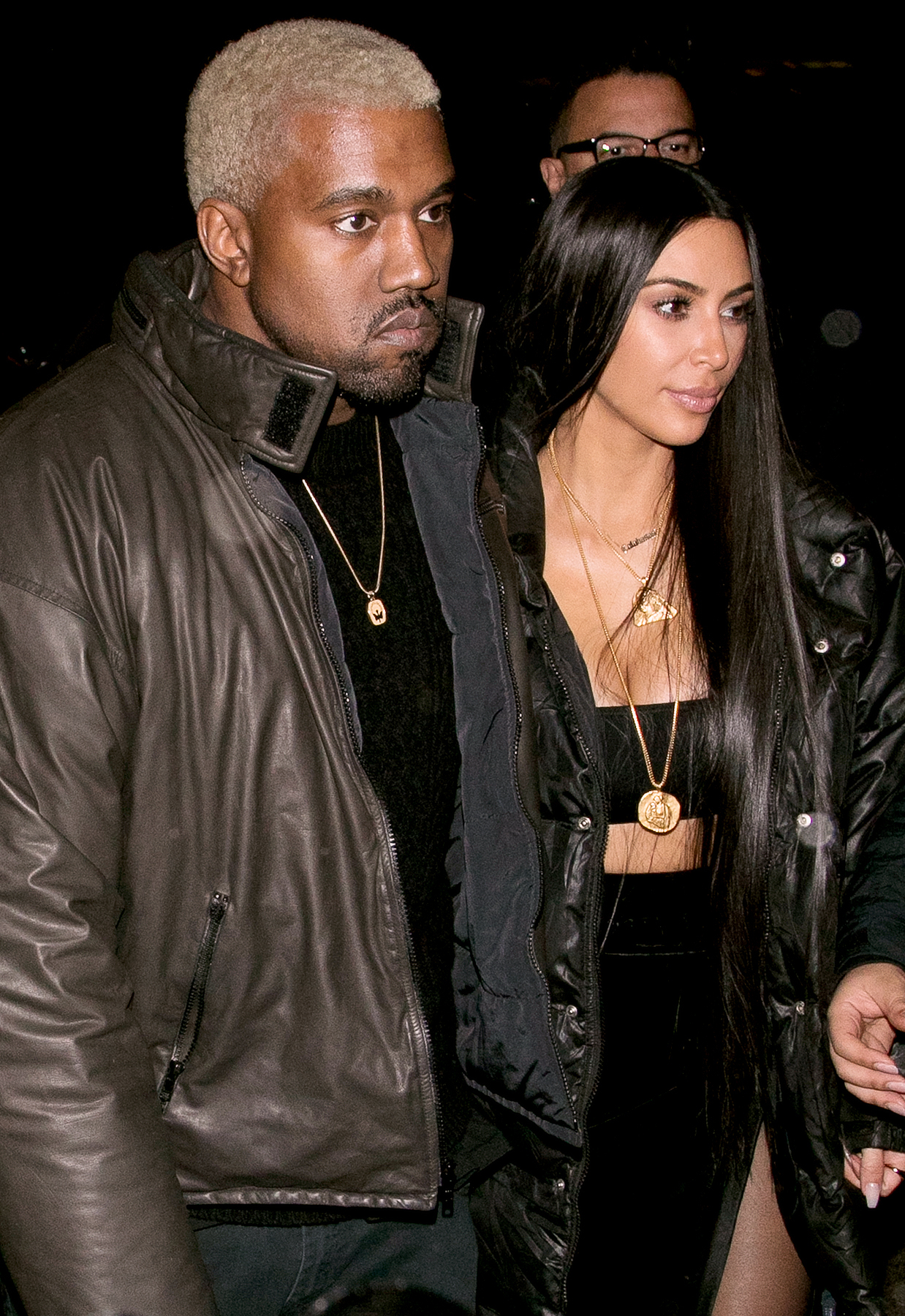 The couple, who will celebrate three years of marriage in May, were spotted dining at the Italian restaurant Carbone in Manhattan’s Greenwich Village. Kardashian, 36, looked beautiful in an oversize black puffer jacket, a bandeau, a high-waisted velvet maxiskirt and boots. West, 39, showed off his recently dyed blond hair and wore a brown leather jacket, a black T-shirt, dark jeans and white sneakers.