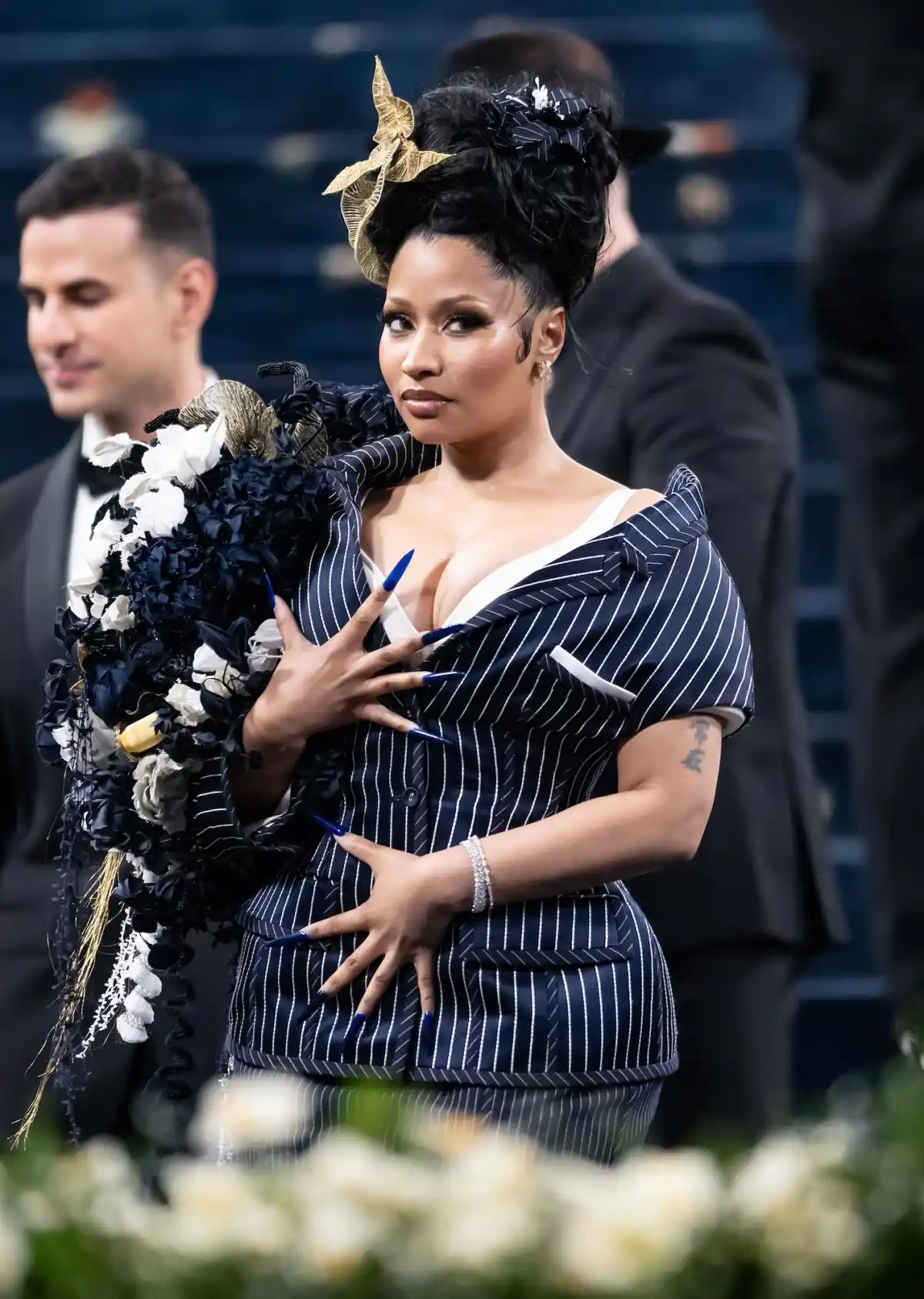 “Dear Barbz, about that pose…. Ummm 😩,” she wrote. “this Chanel dress was just a tad shorter than I thought & the thongs definitely didn’t help. Didn’t want to make it explicit.😃 Both feet on the ground tho. Ten toes. Ima put on a diff outfit that won’t show so much skin & do it again for you guys later. 🩷🙏🏽🎀 love 🫵🏽.”