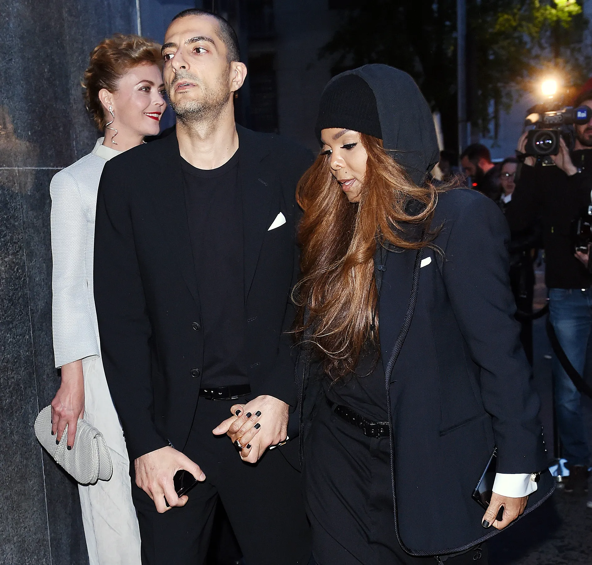 The “Doesn’t Really Matter” singer, 48, was photographed holding hands with husband Wissam Al Mana as they made their way into Nobu for the reception. Both wore head-to-toe black, with Jackson sporting black platform sandals, billowy black pants, and a hooded black coat over a black beanie.
