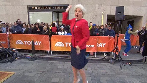 Hager donned a red blazer, navy skirt and Bush’s signature pearl necklace along with a white wig to play her paternal grandmother. To go with the ’90s theme, she hilariously danced the Macarena in the Today show plaza in NYC’s Rockefeller Center.