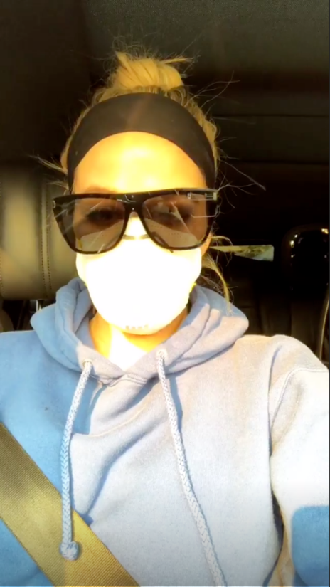The reality TV star, 34, posted a series of clips on her Instagram Story showing her wearing a mask over her face due to the heavy smoke.