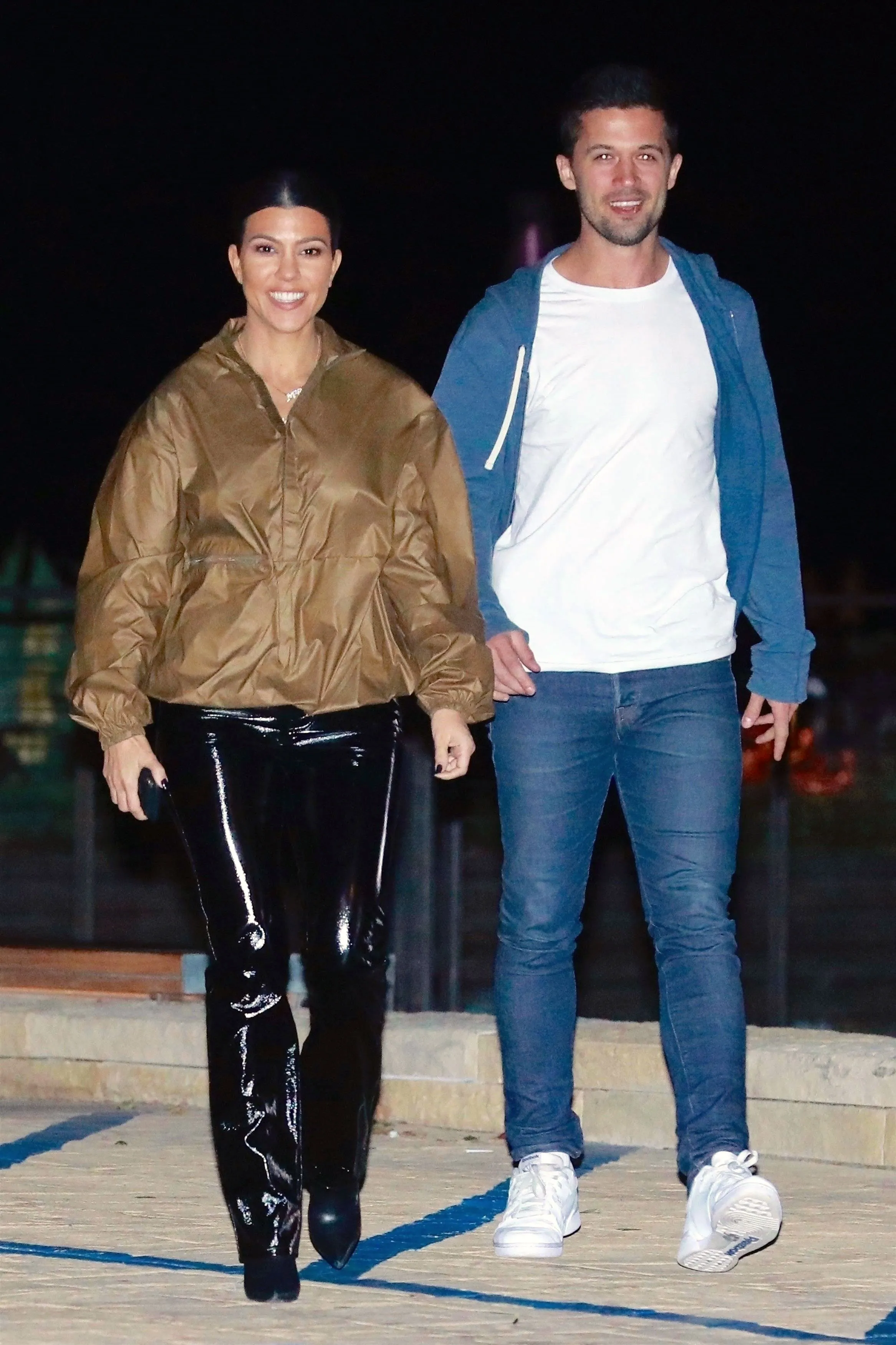 The 39-year-old reality star rocked black leather pants and a khaki-colored jacket as she strolled side-by-side with her unnamed dinner date on Thursday, January 24. The two were both all smiles as they left the Japanese hot spot. Kardashian’s dark-haired pal looked casual in jeans, white sneakers and an unzipped sweatshirt.