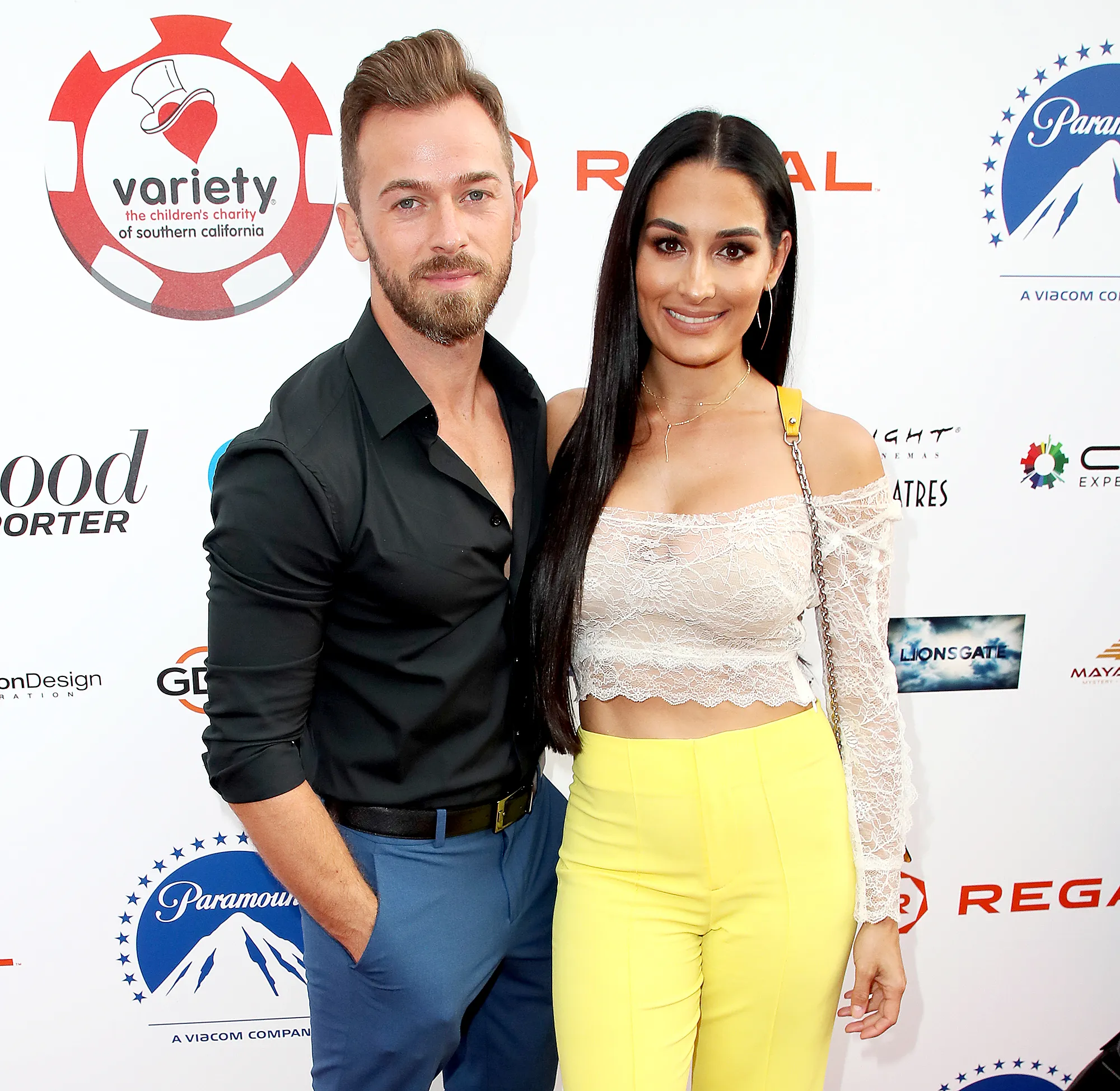 “Artem is an amazing guy. You’re really fun to date. We have the best date nights,” the former WWE diva gushed to Us, making Chigvintsev blush. “Anytime I’m, like, kind of sad or just having a hard day, he always shows up with a bouquet of flowers. And it’s really cute and he just will do cute stuff. I remember when we were hiking one time and it was a beautiful sunset and he’ll just do little, like a dip or like a few little dance moves. And as a woman, I can’t tell you, but it makes us smile so big and it makes me feel so amazing.”