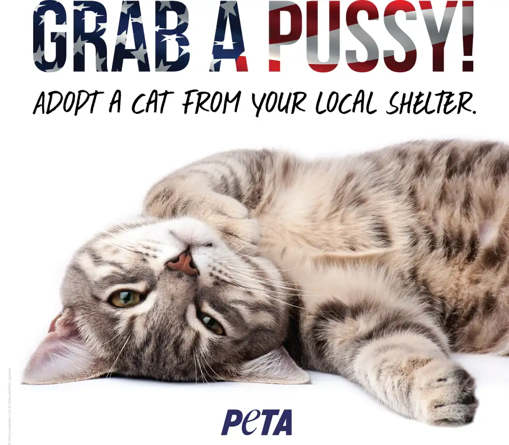 Meow! PETA launched a timely campaign called “Grab a Pussy” to encourage New Yorkers to adopt cats from their local shelters after Donald Trump used a similar phrase in a very different context in his recently surfaced 2005 conversation with Billy Bush.