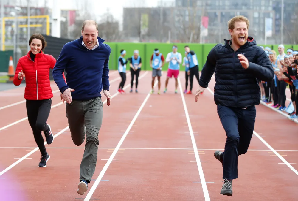 The royals are off! Prince William, Prince Harry and Duchess Kate competed against each other in a 50-meter race for charity in London on Sunday, February 5.