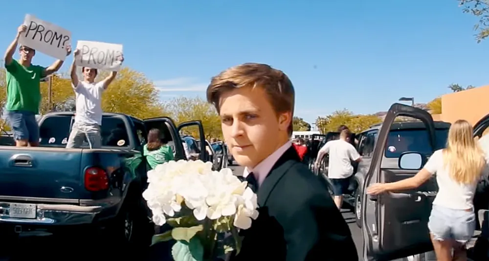 At the end of the clip, the young Lothario presented the camera with a bouquet of white flowers as his friends held up about a dozen signs reading “Prom?” behind him. No response yet from Stone.