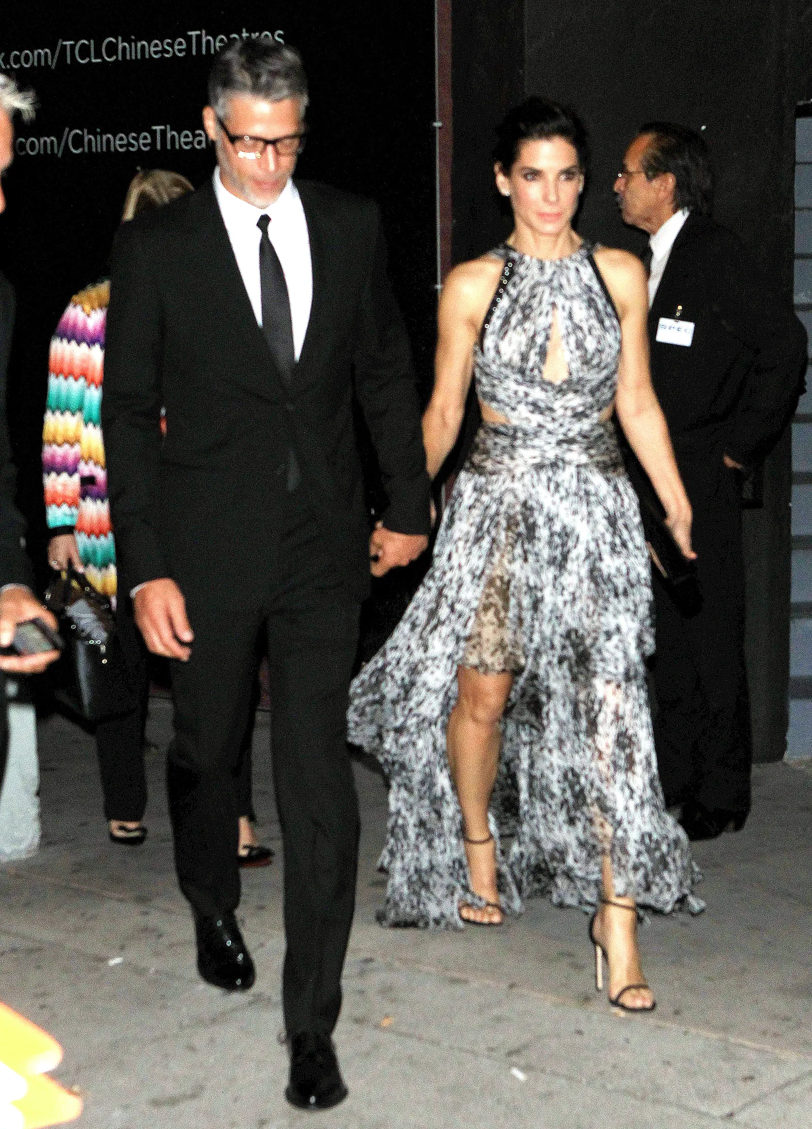 Meanwhile, Bullock’s handsome photographer beau, whom she met when he snapped her son, Louis‘ 5th birthday party this past January, sizzled in a black suit, with a black skinny tie and patent shoes.