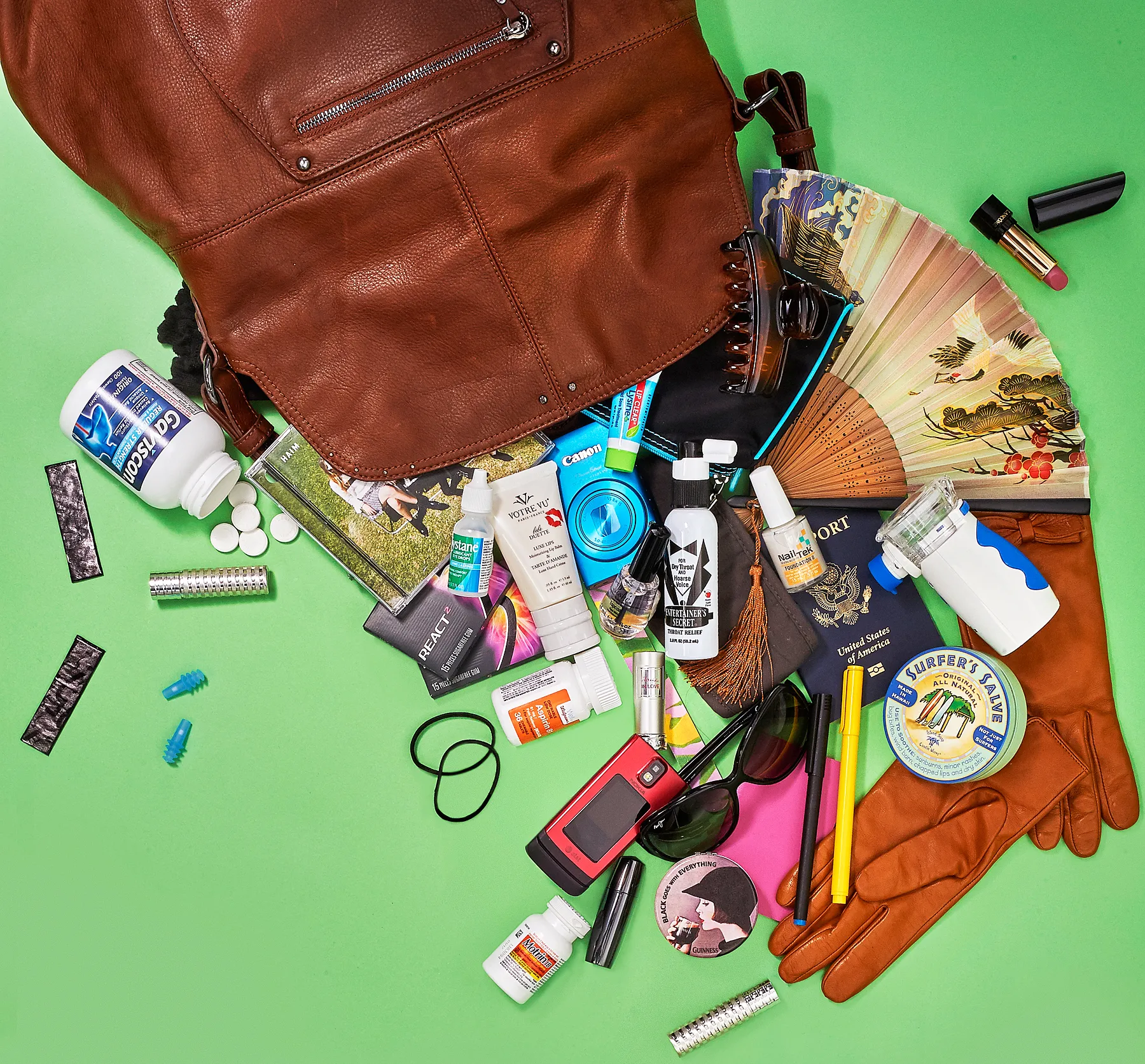 “It’s a really beautiful leather bag that I bought about ten years ago. Everybody has forever been saying, ‘How come you don’t get a new bag?’ My answer is because I like this bag. I don’t really care about designer bags and I don’t have the energy to be switching bags all the time.”