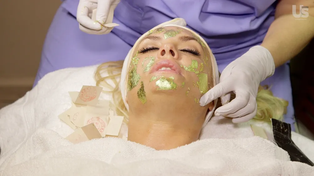 In the next video, Coco goes with Us to Manhattan’s Dyanna Spa, where she treated her skin to a rather luxurious — and sparkly! — skin treatment: a 24-karat gold leaf facial.