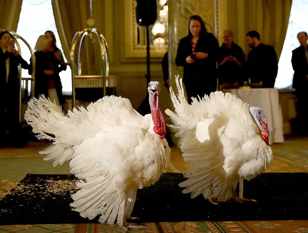 This year, two turkeys will attend the ceremony: Tater and Tot. Both are male birds born on July 18. According to the White House’s Twitter account, Tater’s favorite song is “Me Too” by Megan Trainor, his gobble style is “strong” and he “walks with a swagger.” Tot, meanwhile, loves Justin Timberlake’s “Can’t Stop the Feeling!,” gobbles with confidence and “walks with a relaxed saunter.”