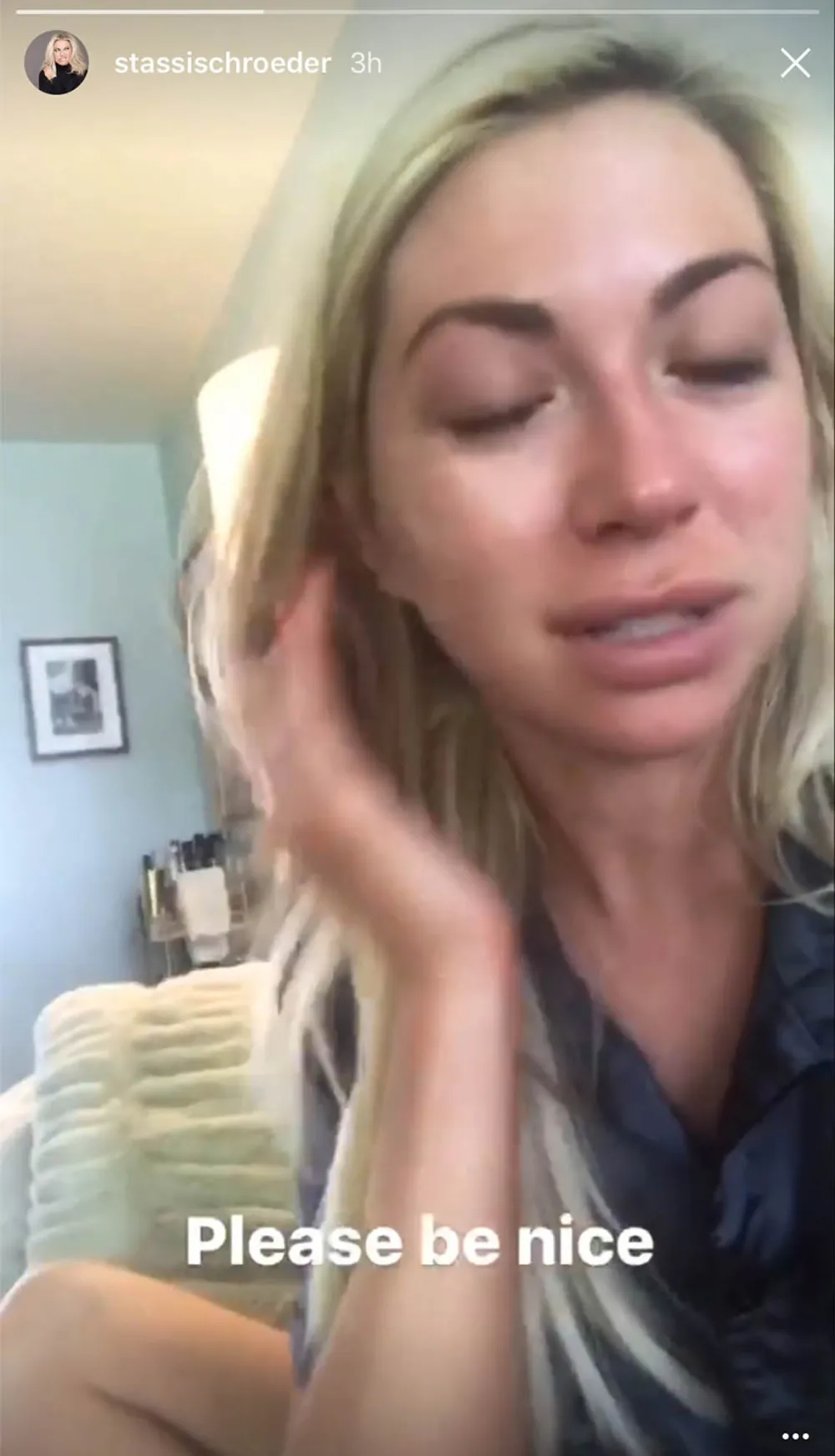 Schroeder also posted a video on Instagram on Saturday that showed her in tears along with the caption “Please be nice.” In the video she added to her stories, she said, “If I see one more comment saying you were rooting for us guys, I’m going to lose my s–t. Please be supportive or don’t say anything.”