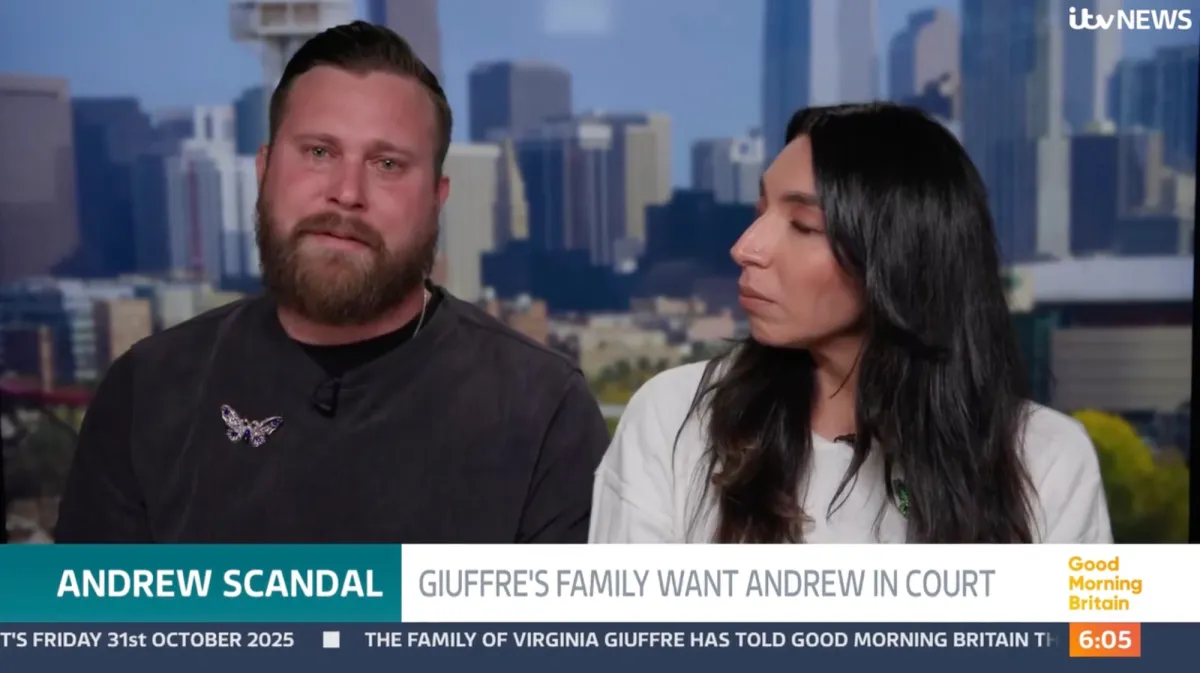 Virginia Giuffre’s brother, Sky Roberts, became overwhelmed with emotion during a television interview as he reacted to the news that Prince Andrew will be stripped of his royal titles.