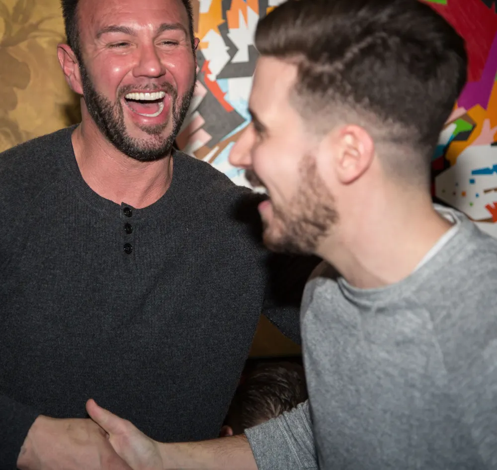 Sammi’s parents and older sister, who encouraged everyone to use the personalized Snapchat filter she made for the evening, were also there, as was her Just Sayin’ podcast cohost Clare Galterio. For most of the night, Vinny chatted with Jenni’s husband, Roger Mathews, on the plush velvet benches along the wall, under pop art portraits of Albert Einstein and Kate Moss, while Jenni sipped on a martini. Sammi kindly checked in to make sure I was having a good time as I bopped along to DJ Tom Macari’s Top 40 mixes.