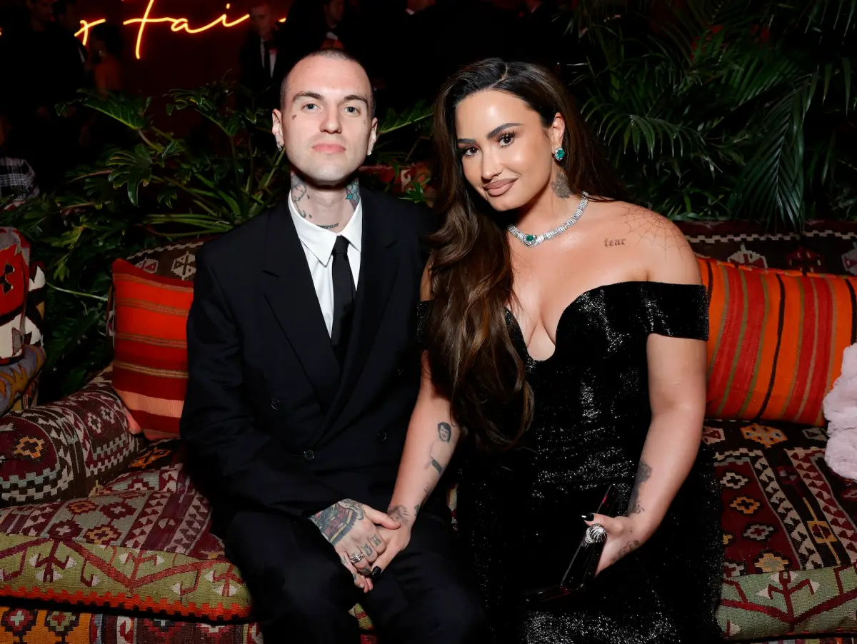 Lovato and Lutes wed in an “intimate” ceremony, in front of 135 family and friends. She looked “breathtaking” in a white Vivienne Westwood gown, while walking down the aisle.