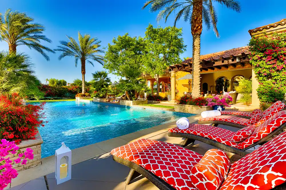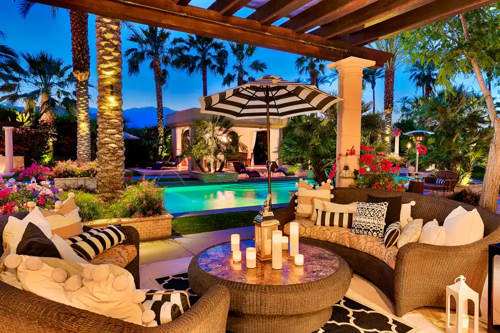 Gaga oh-la-la, indeed! After giving nearly 20 energetic and emotional performances as Coachella Valley Music and Arts Festival’s 2017 headliner, Lady Gaga had a luxurious mansion to return to at the end of the day. Throughout the festival weekends, the “Million Reasons” singer, 31, resided in a 9,500-square-foot, seven-bedroom Rancho Mirage, California, estate, complete with a fitness center, sizable pool and three fire pits, courtesy of Airbnb. Check out the incredible home in the video above and pics below.
