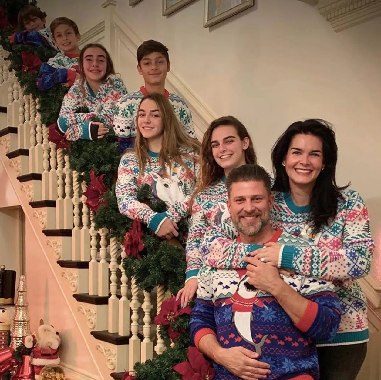 In the slideshow of pics, the couple are standing on their house steps with their kids, all wearing matching holiday sweaters. She has daughters Emery Hope, 11, Avery Grace, 14, and Finley Faith, 16, with ex-husband Jason Sehorn. Vaughan is a dad to sons Landan Reid, 7, Cavan Thomas, 9, and Jathan James, 12, whom he shares with ex-wife Touriya Haoud.