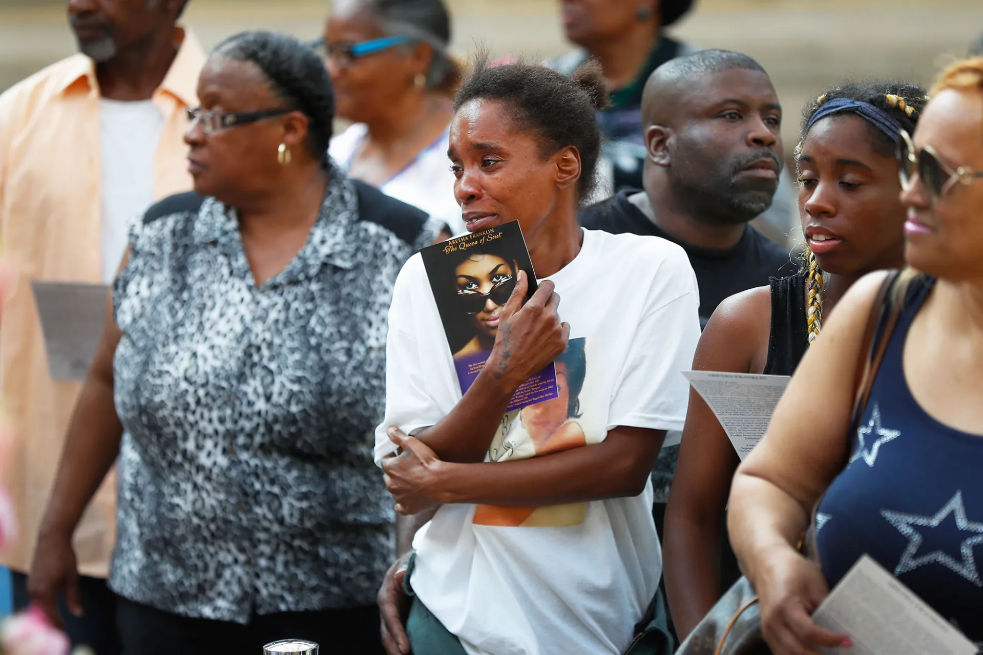 The body of Franklin, who died at the age of 76 on August 16 after battling advanced pancreatic cancer, arrived in a white 1940 Cadillac LaSalle hearse for the first part of a two-day public service. Hundreds of people gathered outside the museum, with many sleeping overnight on the sidewalk.
