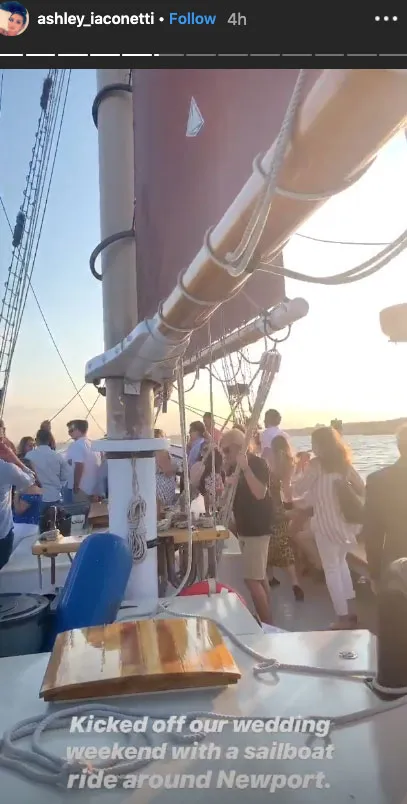 “Kicked off our wedding weekend with a sailboat ride around Newport,” the Bachelor alum, 31, wrote on her Instagram Story on Saturday, August 10. The vessel was packed with loved ones, including Nick Viall and Iaconetti’s sister, Lauren Iaconetti.