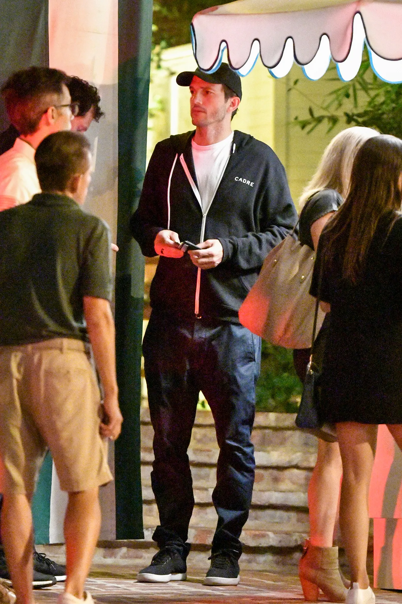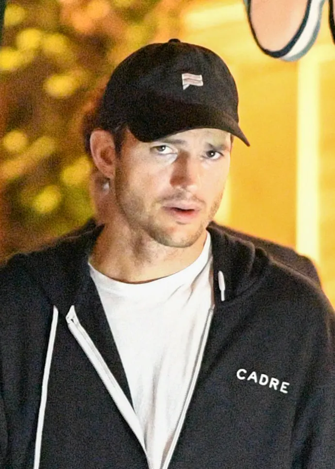 The That ’70s Show alum, 41, looked serious as he waited at the valet stand outside the San Vicente Bungalows. Kutcher sported a zip-up hoodie, dark jogger pants and a baseball hat.