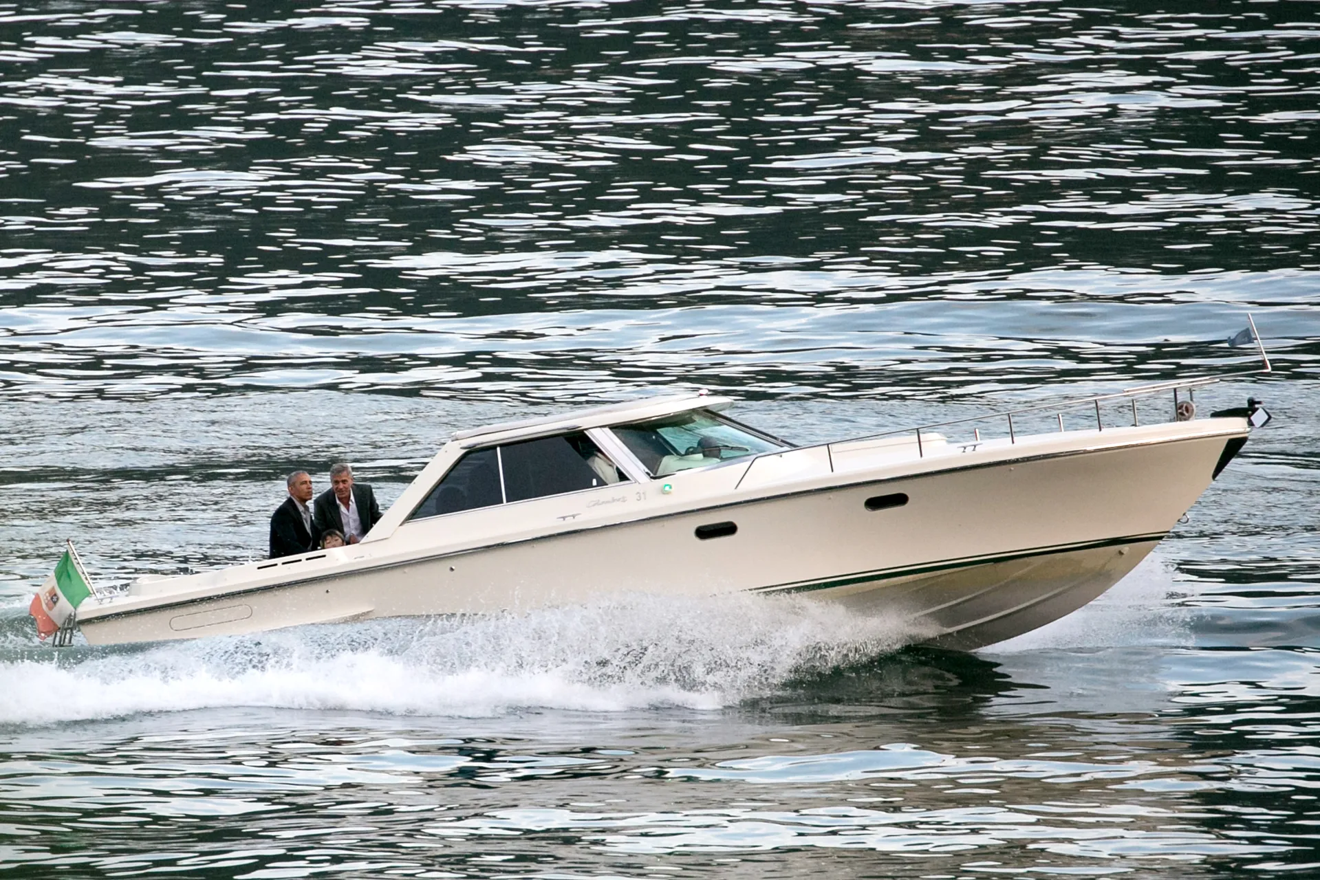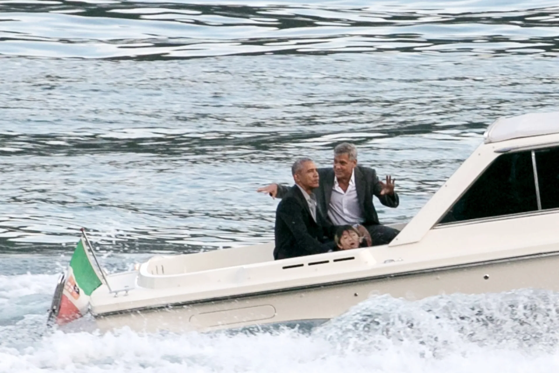 La dolce vita! Barack and Michelle Obama enjoyed a boat ride on Lake Como with George and Amal Clooney on Sunday, June 23. Photos from the excursion show the couples zipping across the Northern Italian lake, close to where the Clooneys have a villa, before disembarking onto shore.