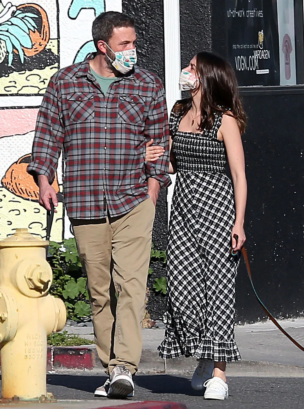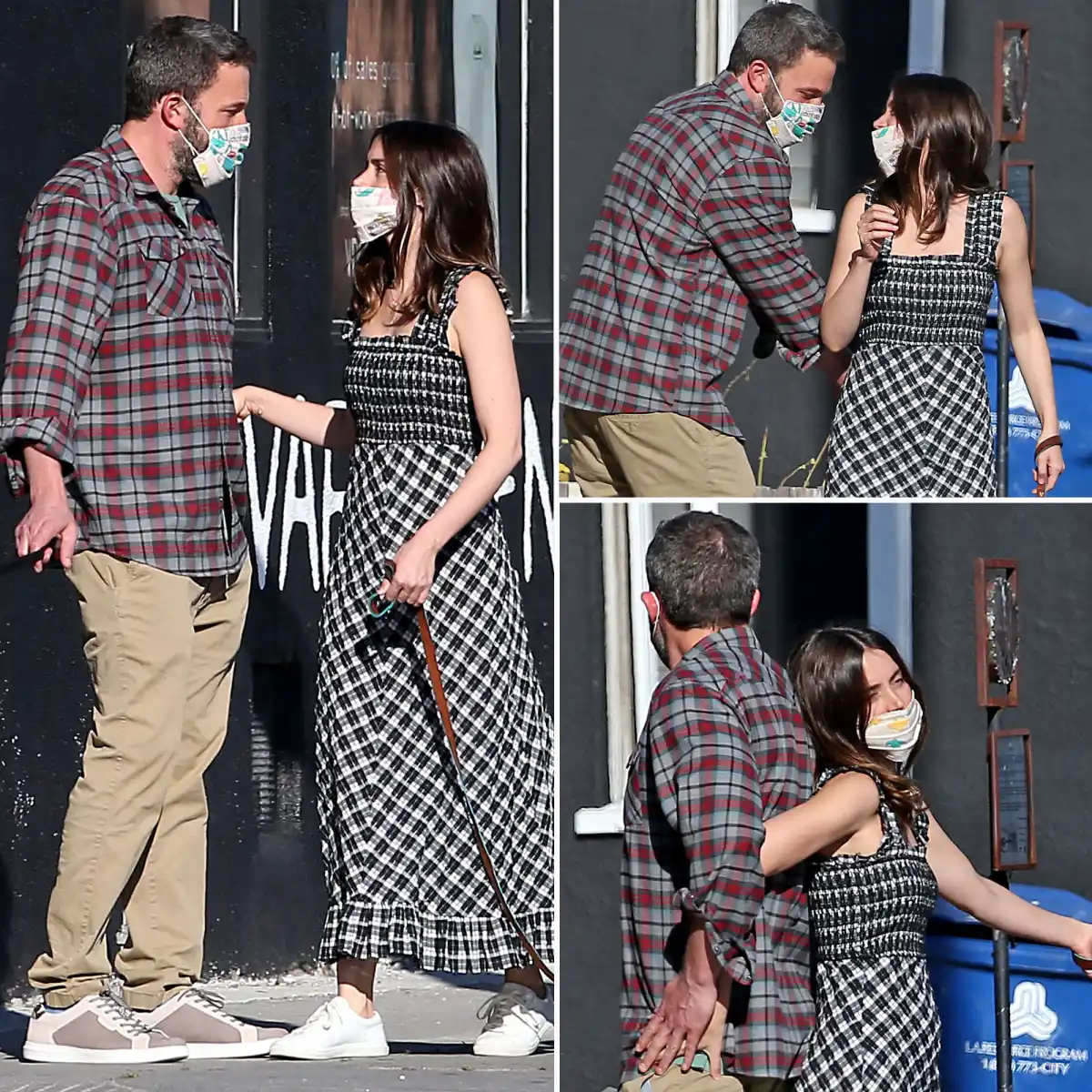 The Way Back actor, 47, and de Armas, 31, took their dogs for a stroll in Venice Beach, California, on Wednesday, April 15. The couple donned matching face masks and coordinated plaid outfits. Affleck sported a red and gray button-down shirt while de Armas wore a black and white sleeveless dress and sneakers.