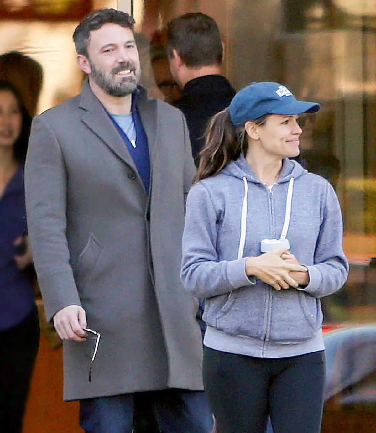 The Argo actor wore a grey peacoat, dark blue jeans and sneakers. The Camping alum, meanwhile, sported a blue baseball cap which she paired with a grey hoodie, black leggings and blue Nike sneakers.