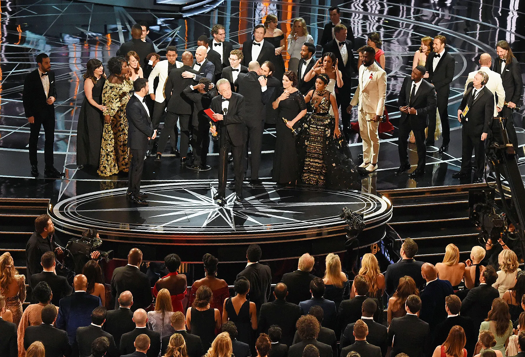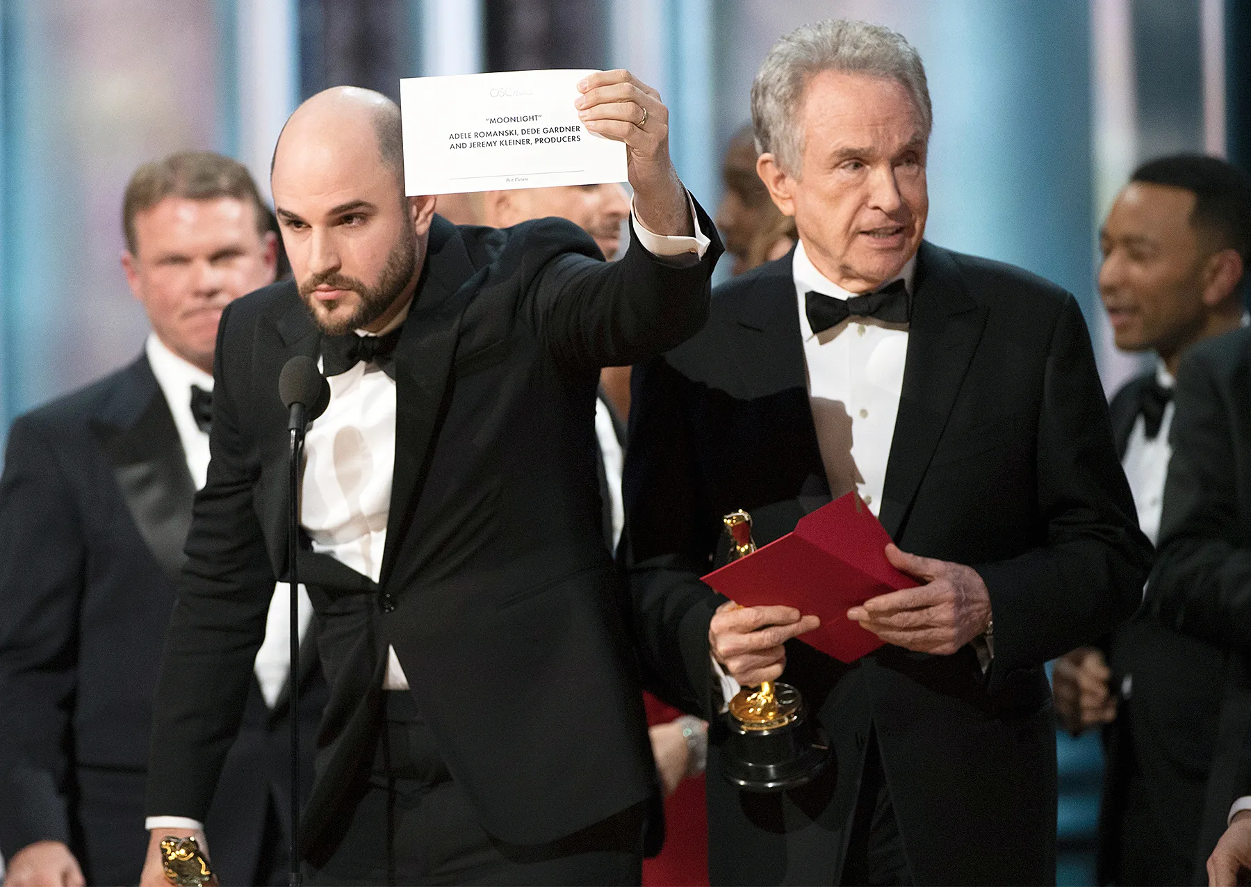 Cringing! Warren Beatty and Faye Dunaway accidentally announced La La Land as the winner, when Moonlight really won the top honor. The former Bonnie and Clyde costars were given the wrong envelope before they took the stage. "This is not a joke," La La Land producer Jordan Horowitz said as he cut off his own acceptance speech. "I'm gonna be really proud to hand this to my friends from Moonlight."
