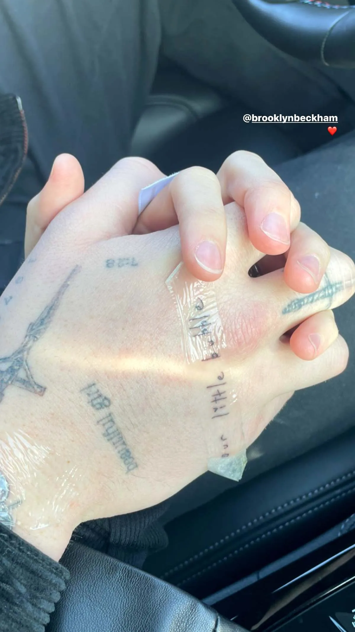 Brooklyn debuted a new hand tattoo reading, "Our little bubble." The phrase is seemingly a reference to his life with Nicola in Beverly Hills. When asked by HELLO! magazine in November 2021 if he missed the U.K., he replied, "No, because I'm marrying my best friend. So, we kind of have our own little bubble together now and it's just really nice."