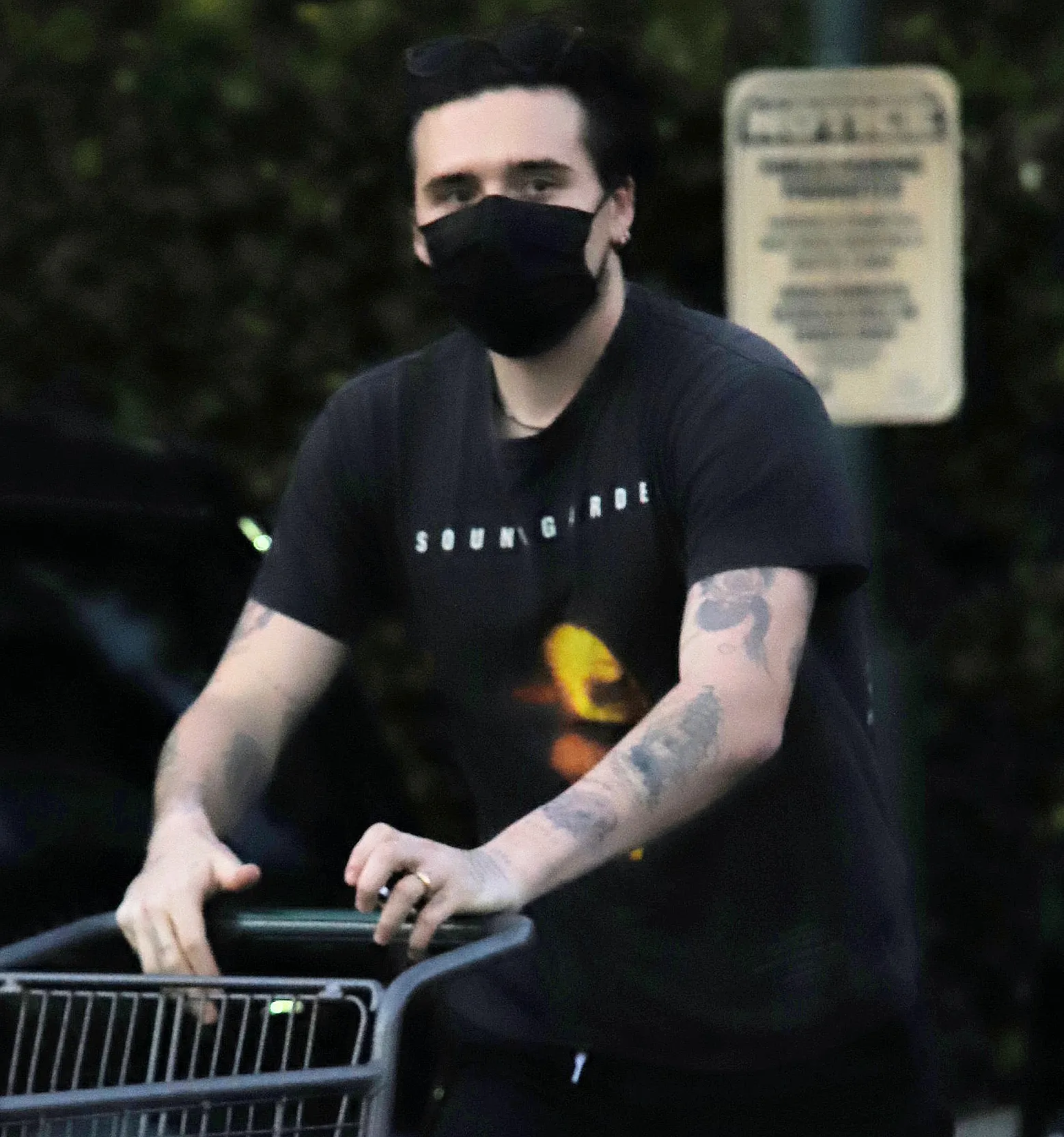 On Monday, February 8, the 21-year-old English model was photographed wearing a band on his left hand while grocery shopping in L.A. He wore a Soundgarden T-shirt and white sneakers along with black jeans and a protective face mask amid the COVID-19 crisis.
