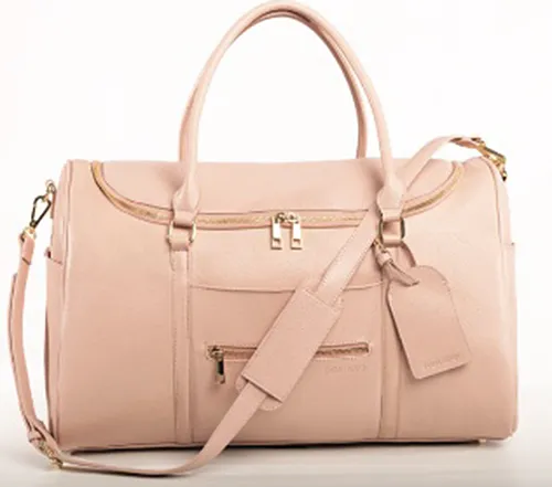 Pretty in pink! This bag is Lauren Conrad’s favorite travel companion, featuring premium faux-leather with interior and exterior pockets for easy travel. ($199, fawndesign.com)