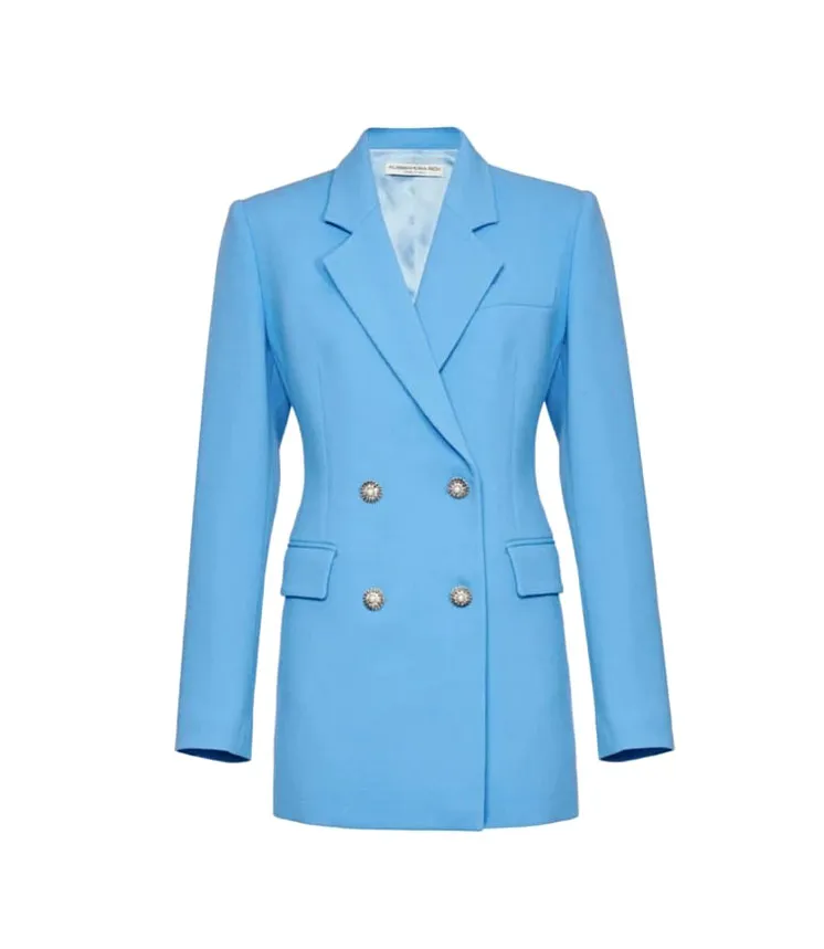 All hail Queen Bey’s fashion sense! Beyoncé once styled this piece by wearing it as a dress, which she paired with heels. The bold blue hue will spice up any look. ($2,171, alessandrarich.com)