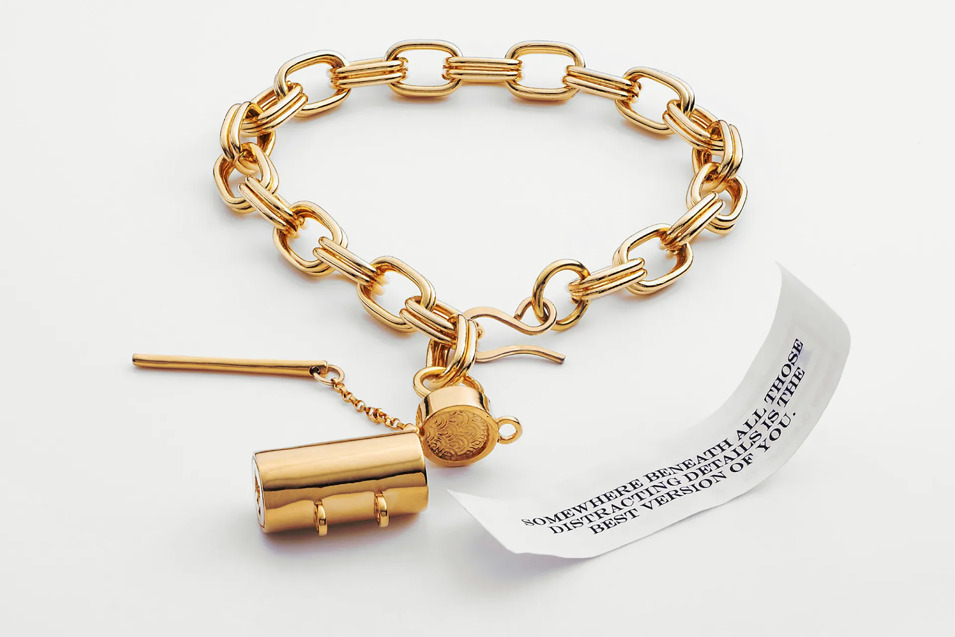This bracelet, that Whoopi Goldberg loves is inspired by vintage poison rings, opens to reveal a secret fortune scroll. ($158, fortuneandframe.com)