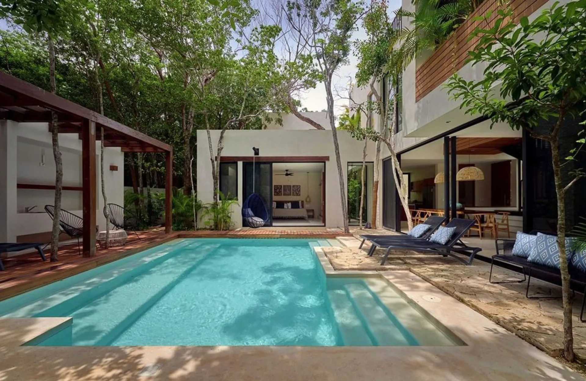 The only way to stop the frown lines before they start is to kick back and relax. Fall has arrived, but Hollywood will still find their way to warm, sandy beaches just south of the border. Aldea Ka’an Tulum offers luxury rental home rentals in Mexico. The gorgeous properties include state-of-the-art rooms and unique layouts. One is a three-home property with a shared backyard, perfect for extended families or big groups of friends.